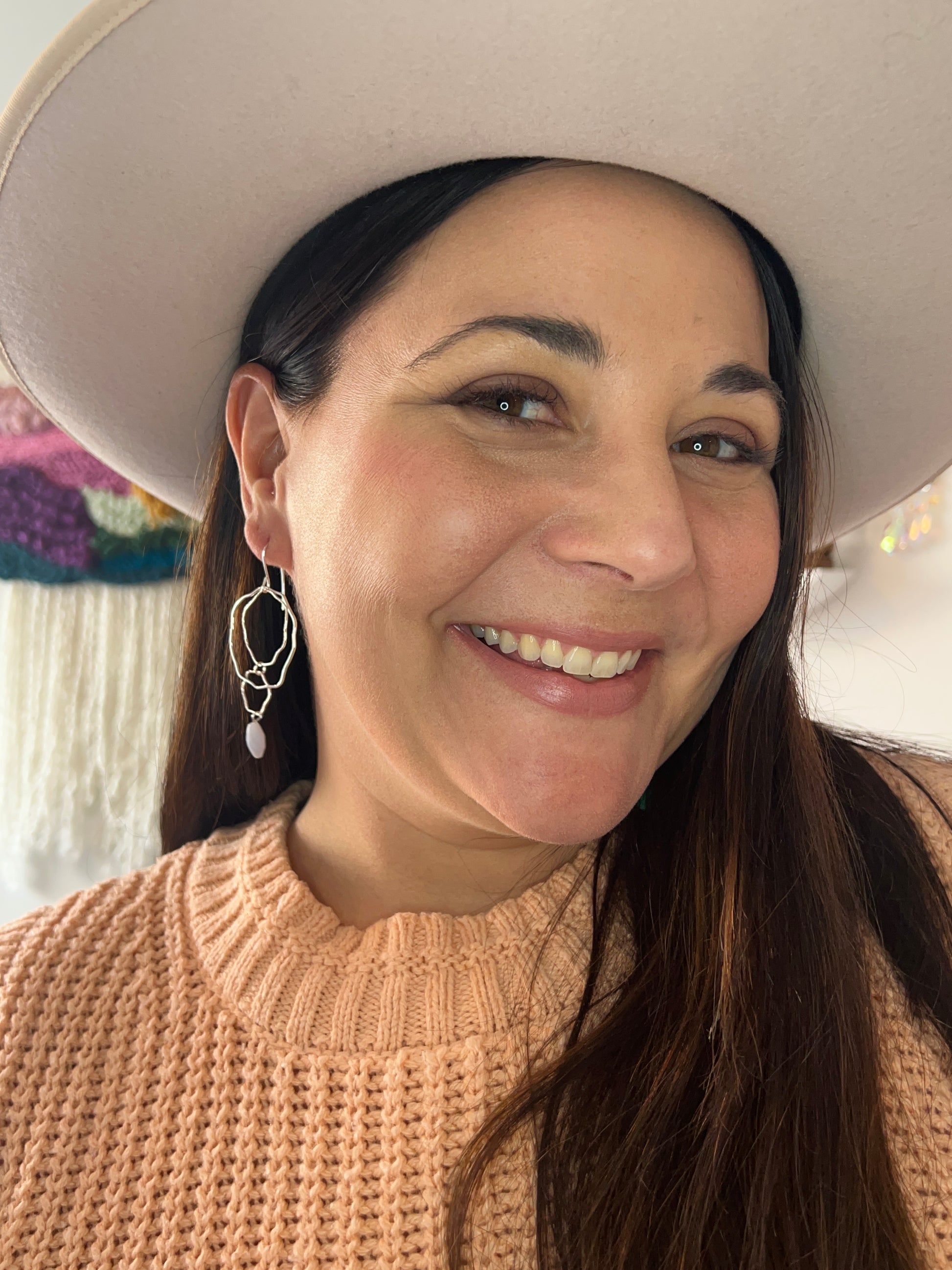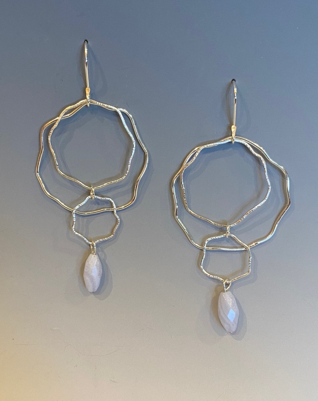 Textured sterling silver wire "blossom" shaped earrings with blue lace agate.