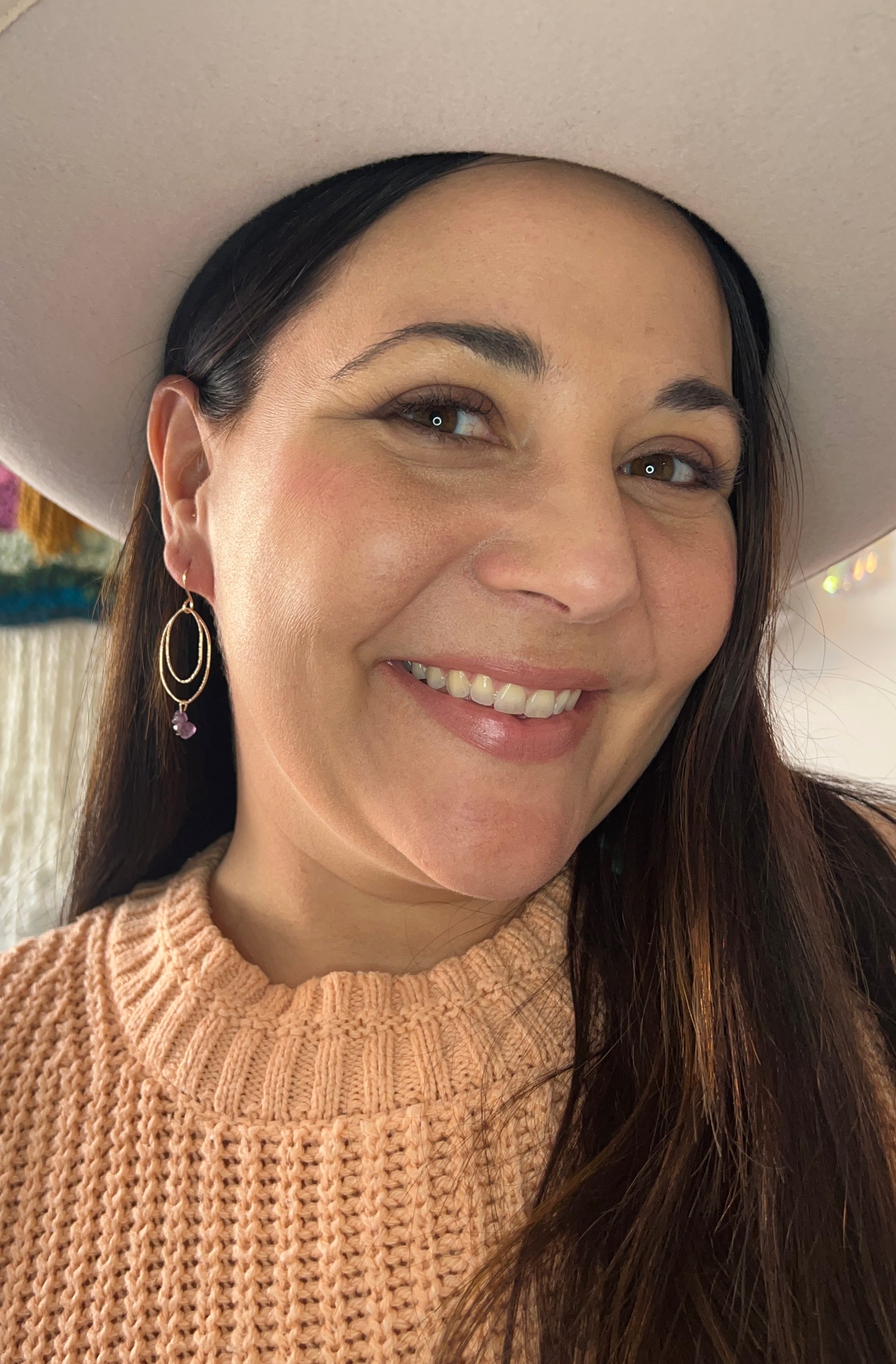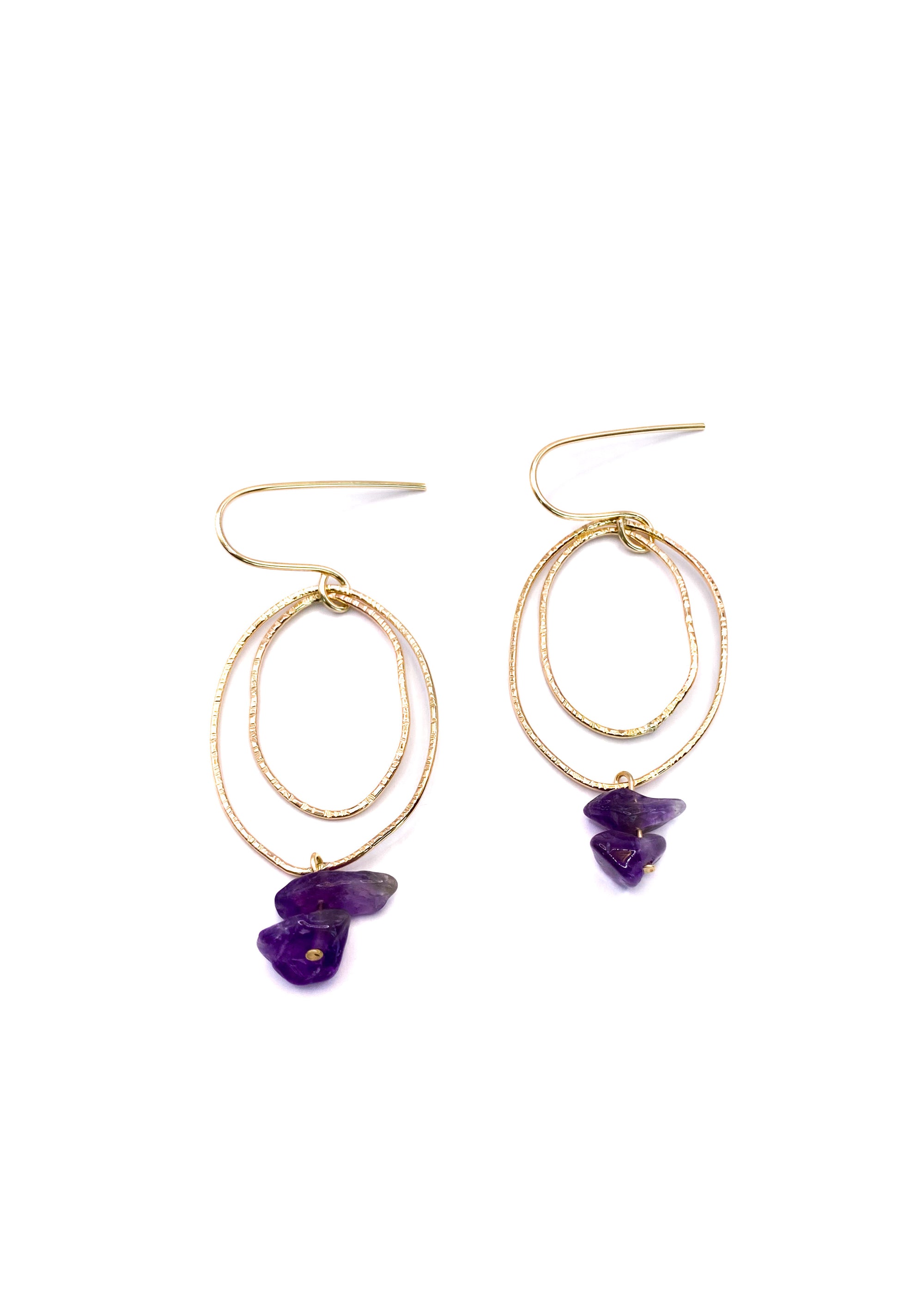 Beautifully textured 14k gold-filled wire earrings accented with amethyst. Earrings hang from a French wire.